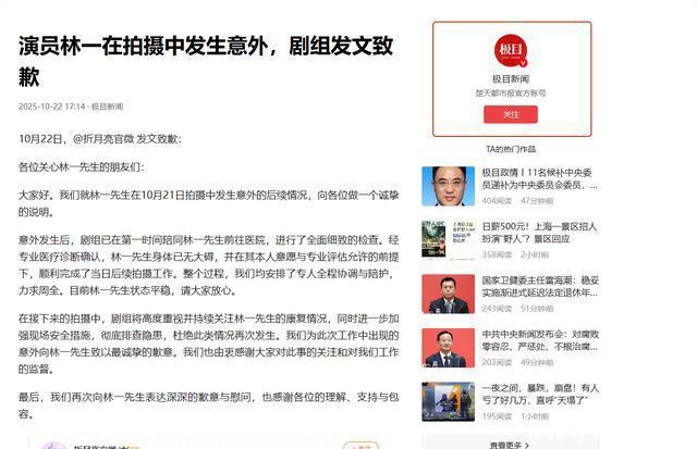 而就在观众还沉浸在《地球超新鲜》里林一的“粤语爆笑操作”时。 最近,林一在拍摄《折月亮》时却发生了意外。 但更令人想不到的,还是他之后的行为。